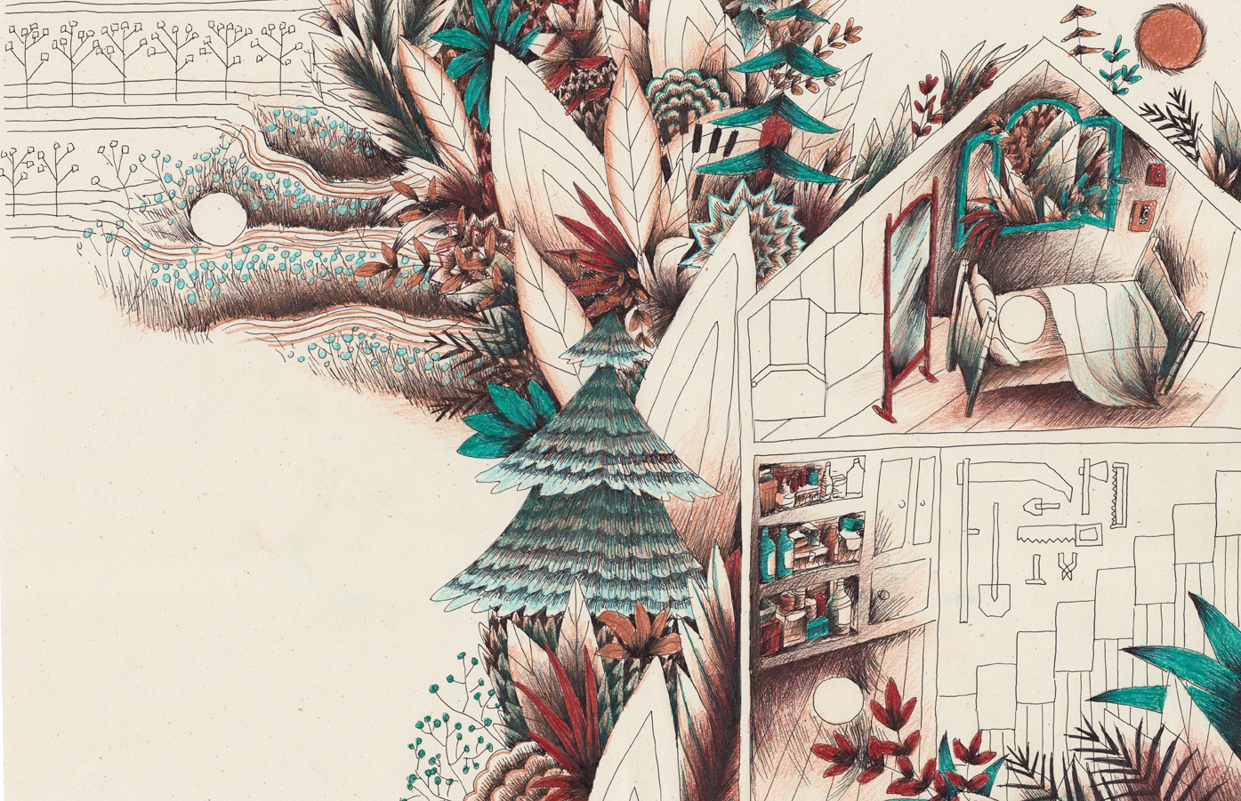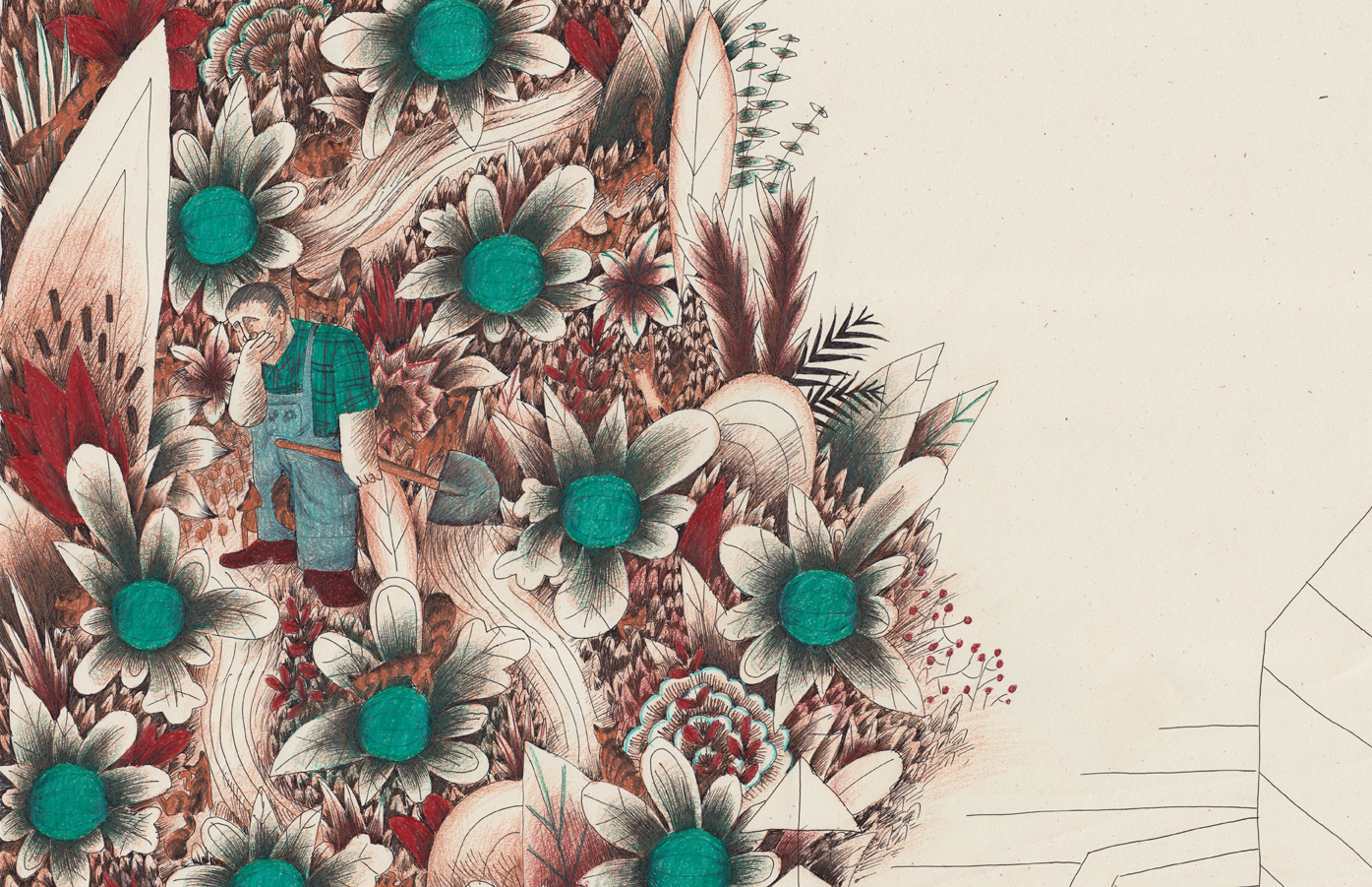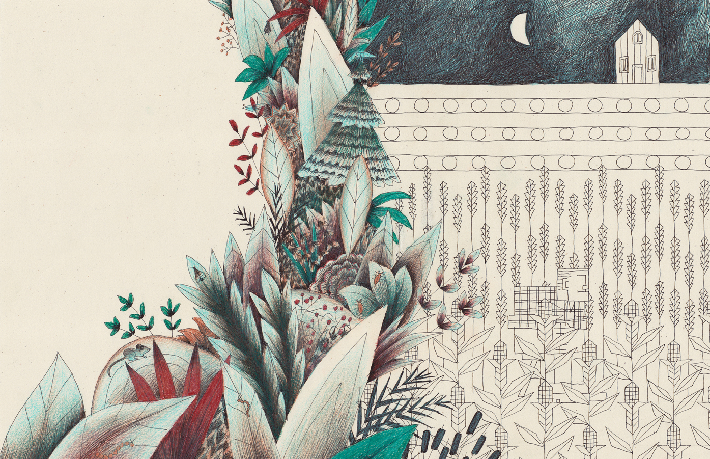 Las ilustraciones se centran en el contraste entre orden y caos. Fuera del campo de sandías el mundo es orgánico y caótico, dentro es ordenado y estéril. La desaparición de la sandía abre una puerta hacia el desorden que invade progresivamente el mundo del personaje.