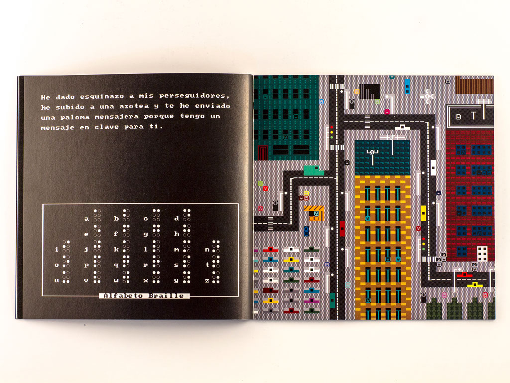 "Un Mensaje en Clave" es un álbum ilustrado para niños de entre 8 y 12 años hecho íntegramente en ASCII y editado por A Buen Paso.