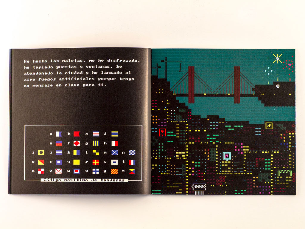 El libro enumera alfabetos y códigos, evoca una trama de película de espionaje de los años 70 y habla de mensajes el clave para contar una sencilla historia de amor.