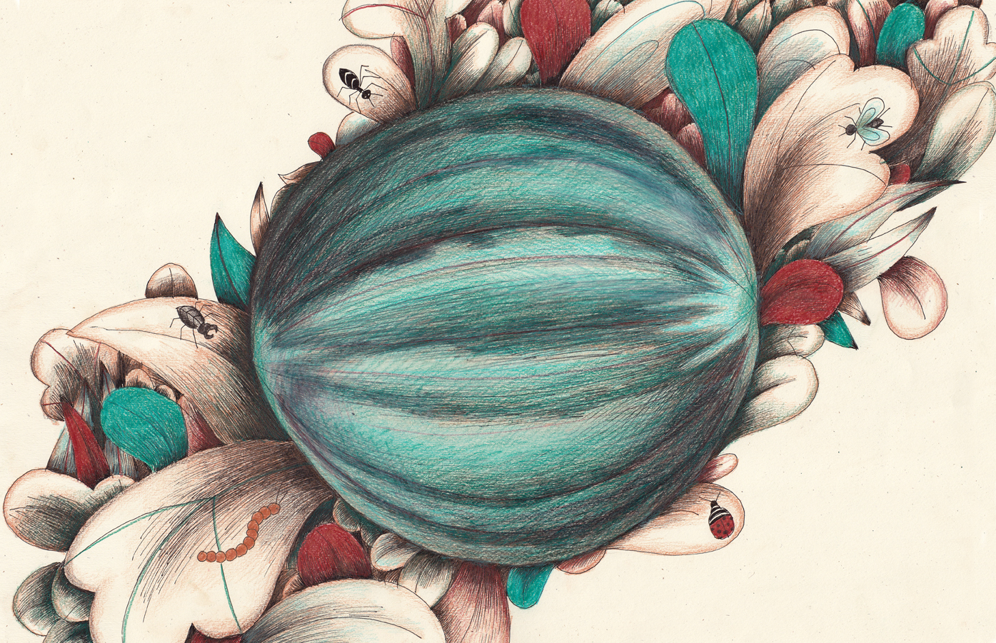 Les illustrations sont centrées sur le contraste entre ordre et désordre. En dehors le champ de pastèques le monde est organique et chaotique, dedans il est ordonné et stérile. La disparition d'une pastèque ouvre la porte du désordre qui envahit le monde du personnage.