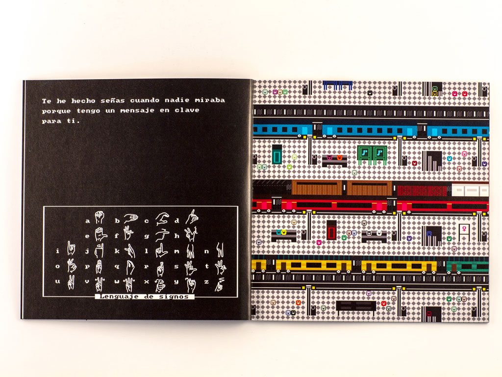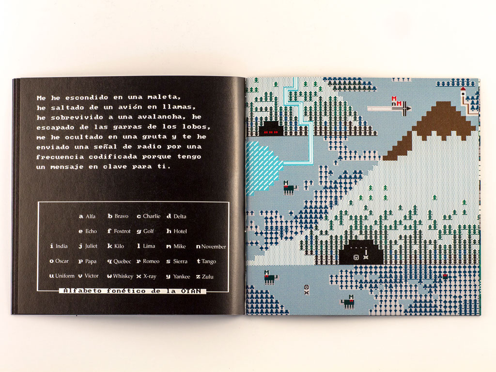 Le livre catalogue alphabets et codes, évoque une trame de film d’espionnage des années 70 et parle des messages codés pour raconter une simple histoire d'amour.
