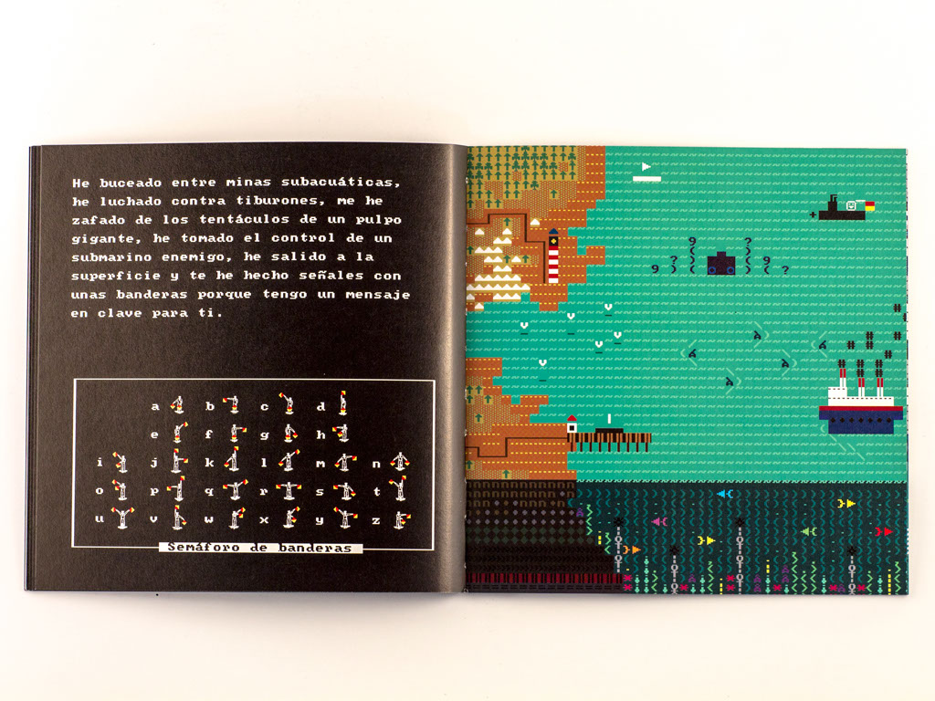 « Un Message Codé » est un album illustré pour enfants d'entre 8 et 12 ans fait intégralement en ASCII et publié par A Buen Paso.