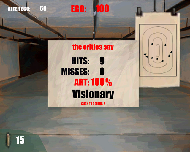 Inspiré par le mythe hollywoodien du tireur si habile qu'il est capable de dessiner une sourire en tirant sur une mouche, « Shoot-Em-Art » propose au joueur le défi de réaliser une série de dessins en utilisant un pistolet.