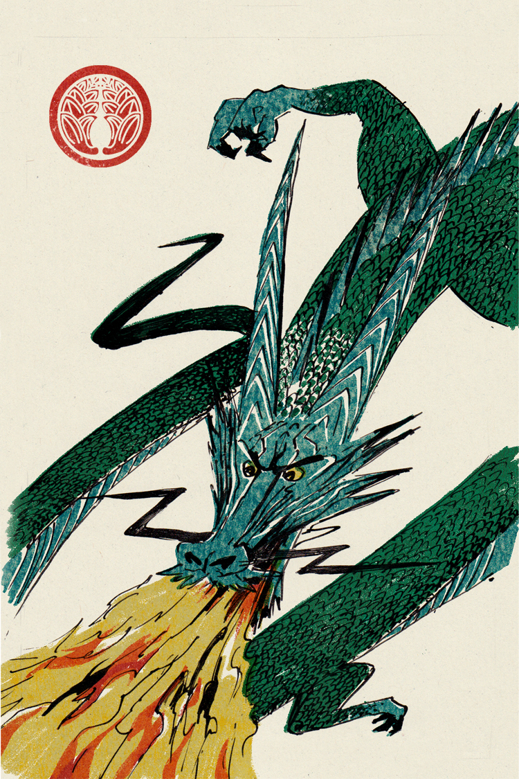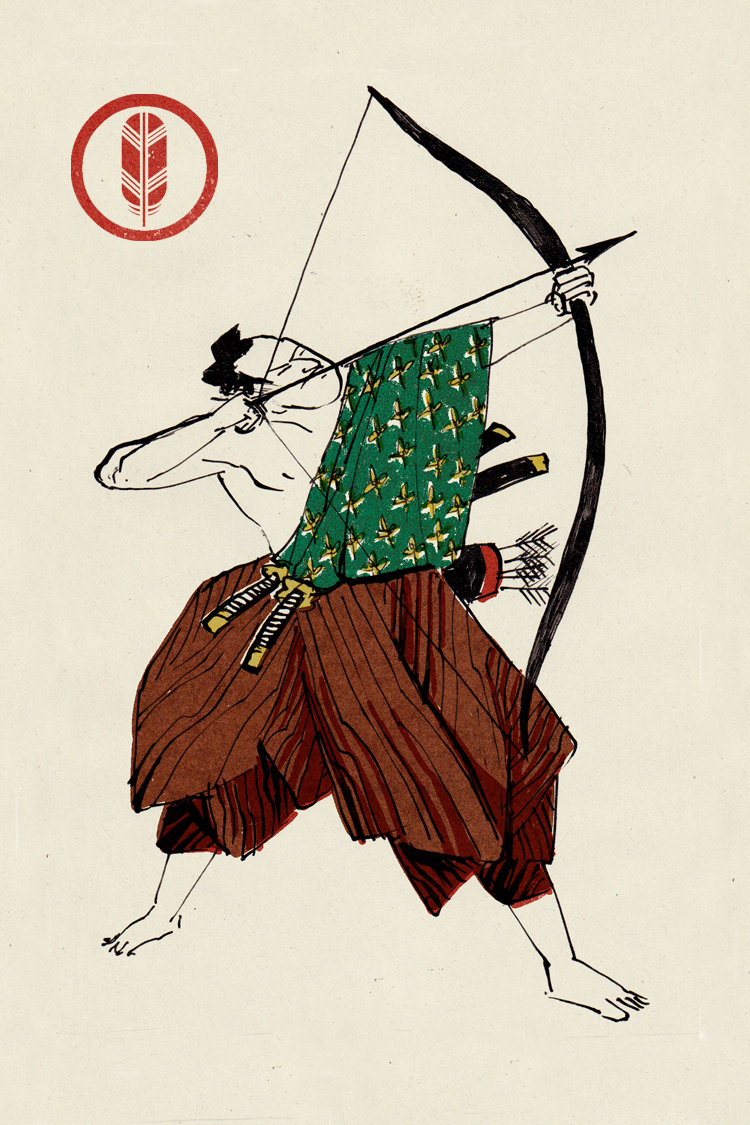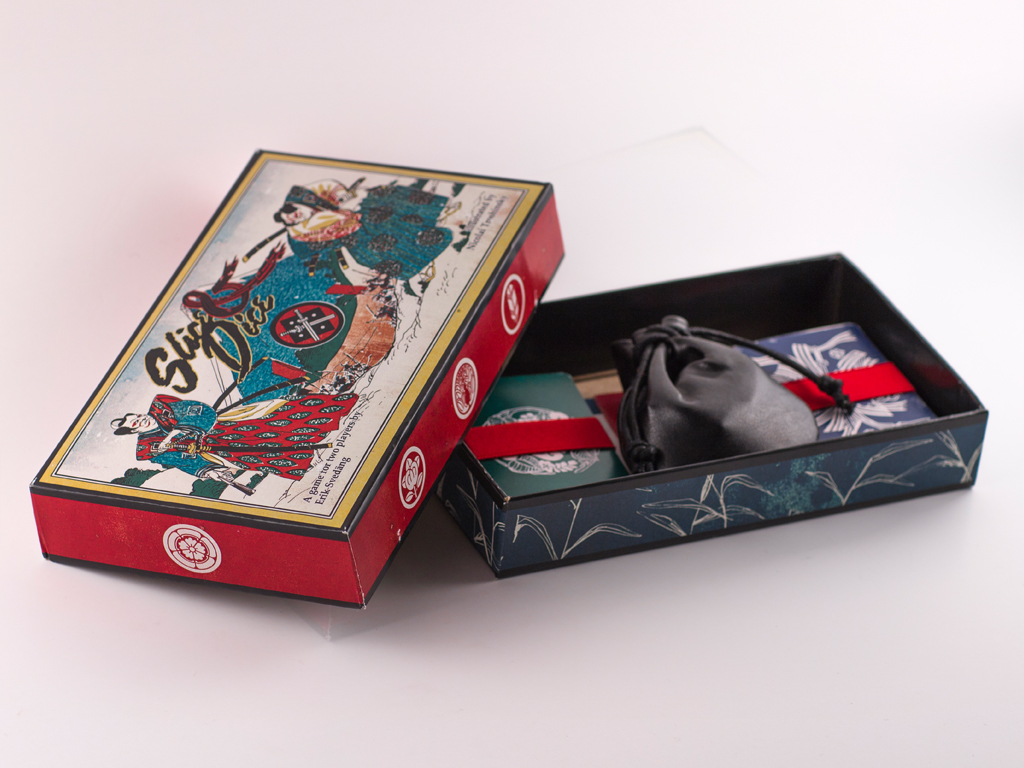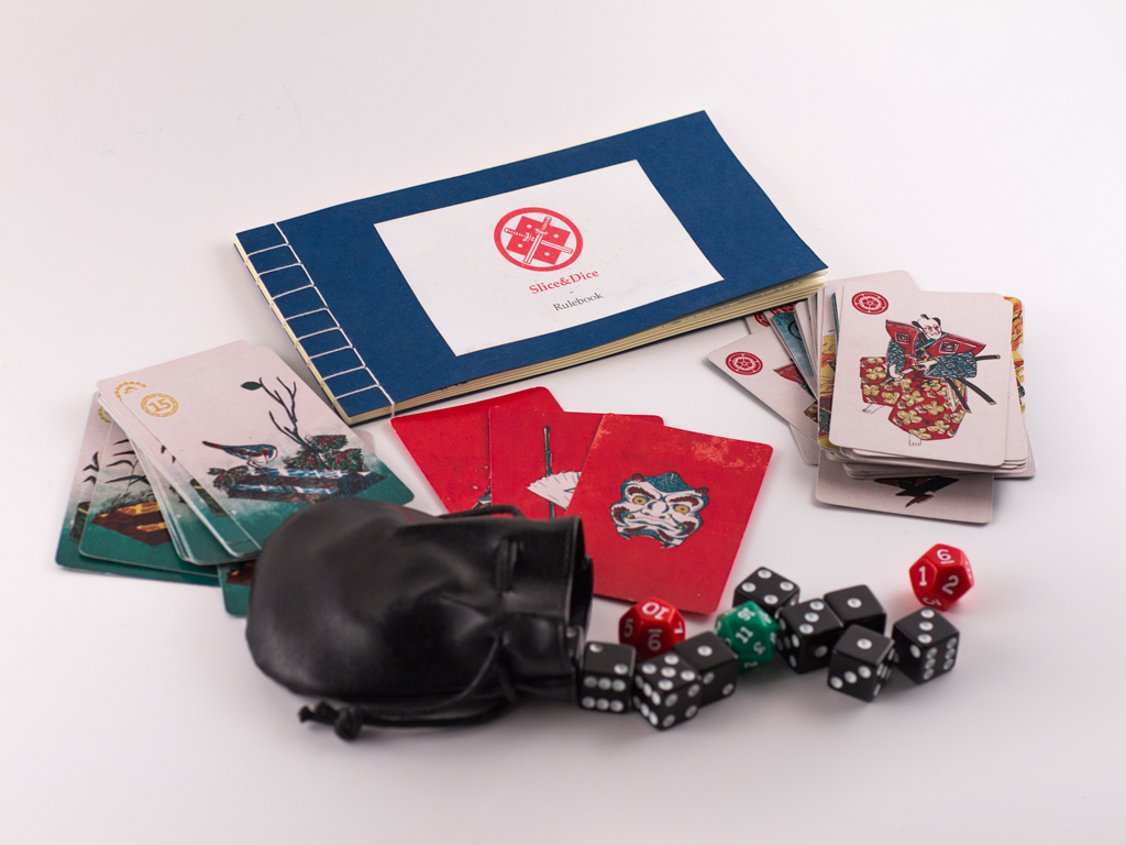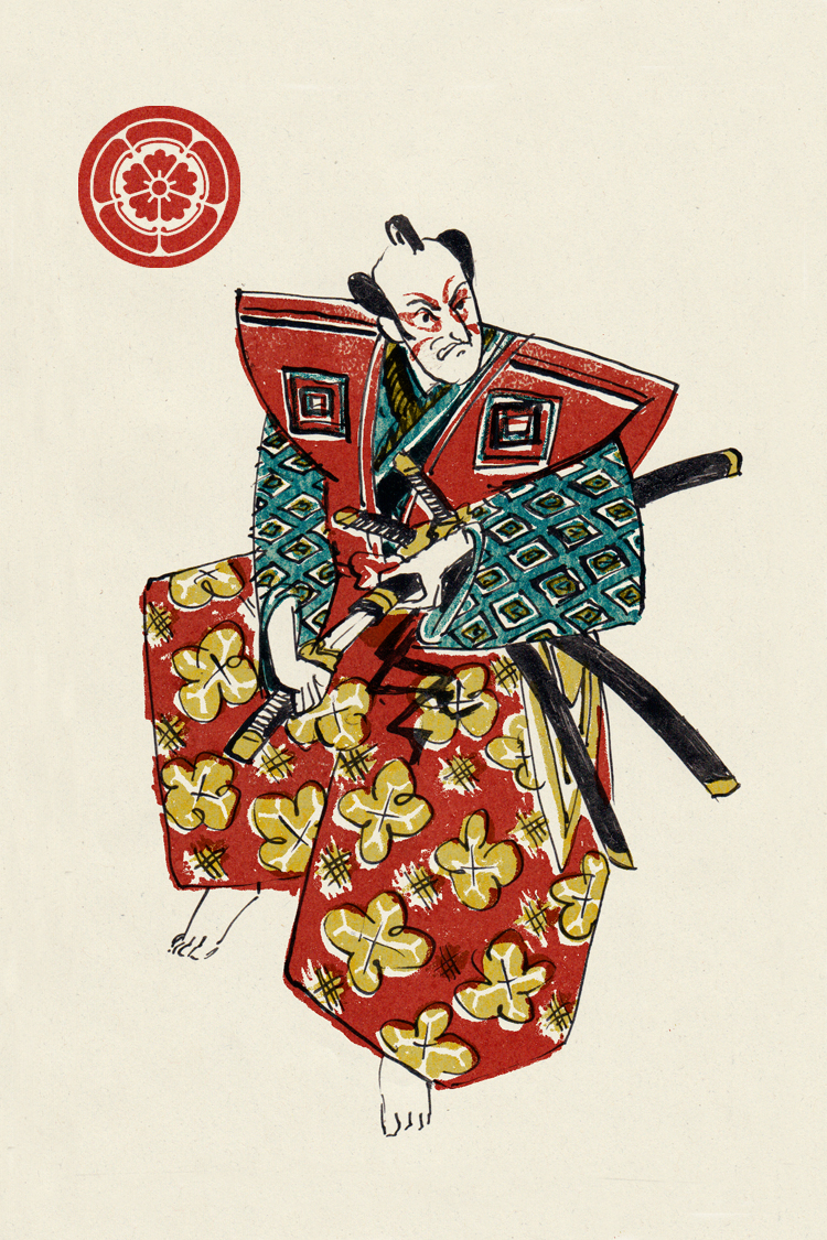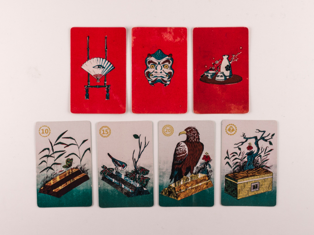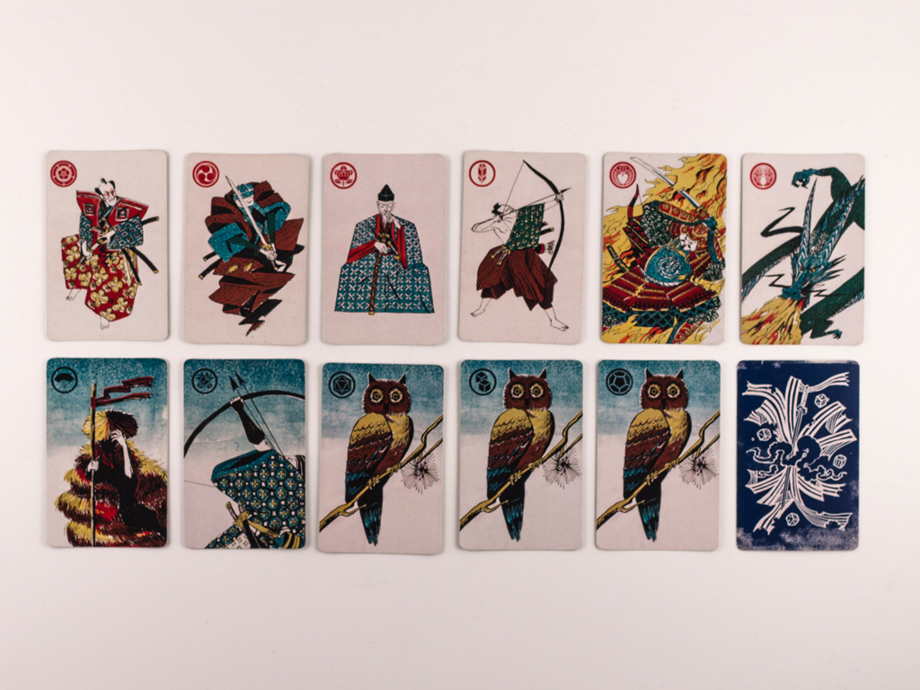 Les illustrations font référence aux gravures japonaises des personnages du théâtre kabuki. Chaque carte est identifié avec un symbole héraldique japonnais ou "kamon". L'esthetique japonaise à un rapport avec l'idée du "sacrifice" qui est une partie importante des règles du jeu. Les illustrations sont faites en encre de chine et monotype à l'huile.