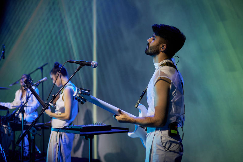 Realizado en Touchdesigner utilizando patrones geométricos simples, principalmente rayas verticales de colores que hacen referencia a la portada del álbum y algunas fotografías de las bailarinas María Pizarro y Lucía Bocanegra.