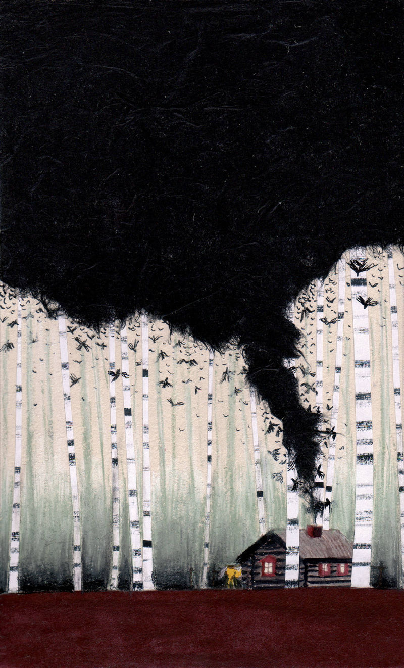 The illustrations are made in mixed media, combining all kinds of techniques such as china ink, pencils, gouache, watercolour, collage and even some pieces of authentic soviet-era cloth.